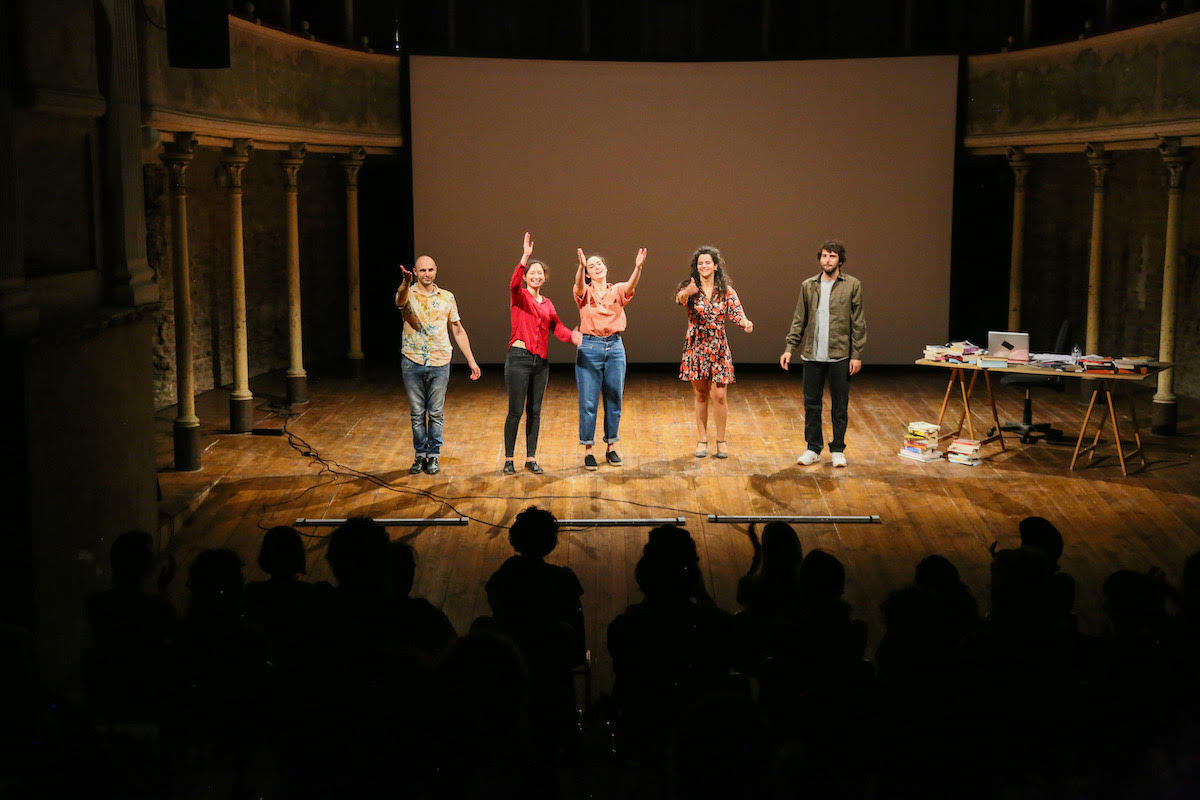 Giulia Quadrelli, attrice e autrice. Dopo la laurea magistrale in Scienze Filosofiche, conclusa con un anno di ricerca alla York University di Toronto, Canada e una tesi sulla Storia dell’Ambientalismo, si diploma nel 2013 alla Scuola di Teatro Alessandra Galante Garrone. Approfondisce gli studi con numerosi maestri di recitazione e canto, primo tra tutti Danio Manfredini. Da anni si occupa di teatro educativo, principalmente in collaborazione con Bologna Medicina. Festival della Scienza Medica di Bologna e la Fondazione Pergolesi Spontini di Jesi, Ancona. Nel 2016 è tra i vincitori del bando Assemblaggi Provvisori con il progetto Ginkgo, da cui prende il nome la compagnia Ginkgo Teatro, fondata nel 2018 insieme ad altri cinque artisti. Sempre dal 2018 inizia a collaborare con ERT- Emilia-Romagna Teatro Fondazione, grazie al progetto Work in Progress della regista rumena Gianina Carbunariu. Dal 2019 fa parte della direzione artistica e organizzativa di #narrandoBO, il primo progetto teatrale che si occupa di dare voce alla città di Bologna. È ideatrice, drammaturga e interprete di Rimini, spettacolo del Gruppo RMN, finalista al Bando Radar di ERT e vincitore del premio delle Giurie congiunte all’VIII° edizione di Direction Under 30, festival promosso dal Teatro Sociale Gualtieri, che debutterà a settembre 2021 al festival Todi Off. Sempre nel 2021, si aggiunge come interprete al progetto Archipelagos di Camilla Brison e Nicolas Lange, all’interno del programma Beyond the Sud.